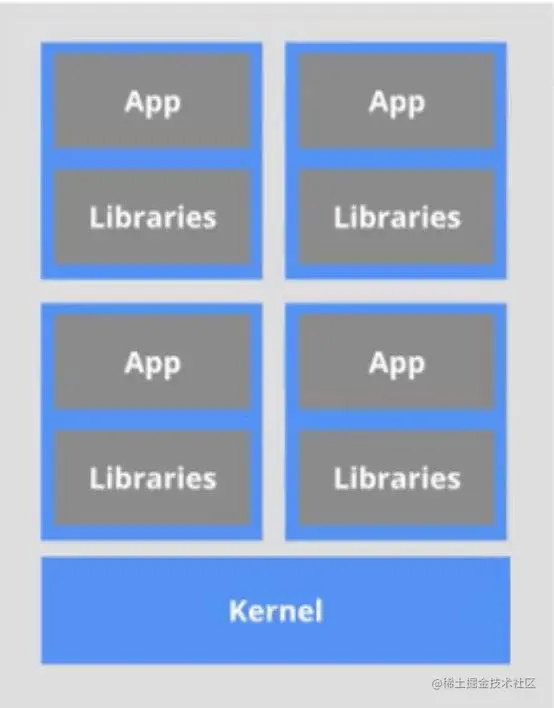 - 传统虚拟化技术是虚拟出一套硬件后,在其上运行一个完整的操作系统,在该系统上再运行所需要的应用进程。