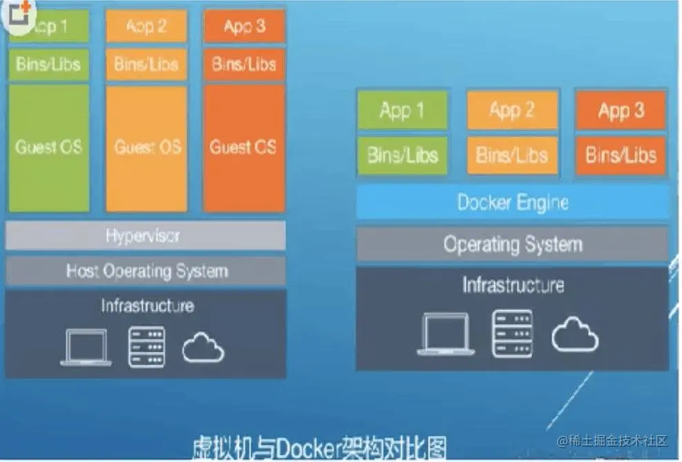 由于之前的虚拟机存在这些缺点,Linux发展出现了另一种虚拟化技术:Linux容器。