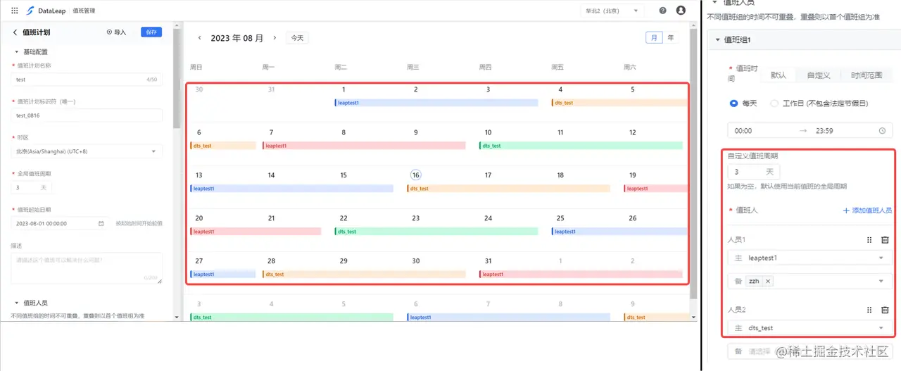 当有值班计划或假期调整,或在非工作日值班排期中,火山引擎DataLeap可支持将时间进行细颗粒度的周期性拆分,实现不同的值班时间配置、来回流畅切换多组主备值班人。