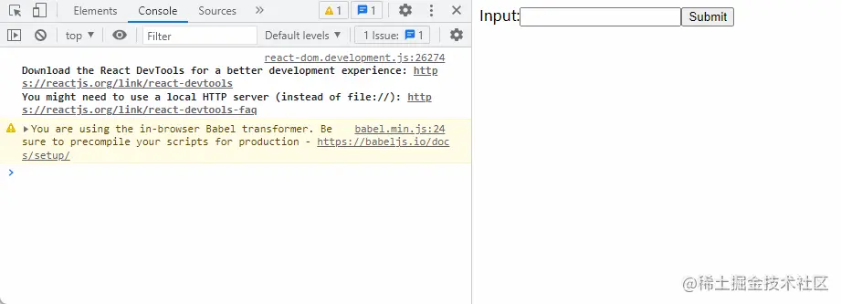 如果我们熟悉vue,会发现这里的state非常像vue中的双向数据绑定data,我们通过onChange事件实时的更新状态中的inputValue值,然后通过handleSubmit函数展示最新数据。