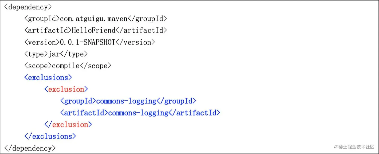 如果我们在当前工程中引入了一个依赖是 A,而 A 又依赖了 B,那么 Maven 会自动将 A 依赖的 B 引入当前工程,但是个别情况下 B 有可能是一个不稳定版,或对当前工程有不良影响。这时我们可以在引入 A 的时候将B排除。