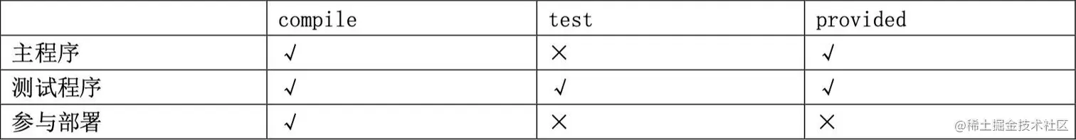 由于非 compile 范围的依赖信息是不能在“依赖链”中传递的,所以有需要的工程只能单独配置。例如: