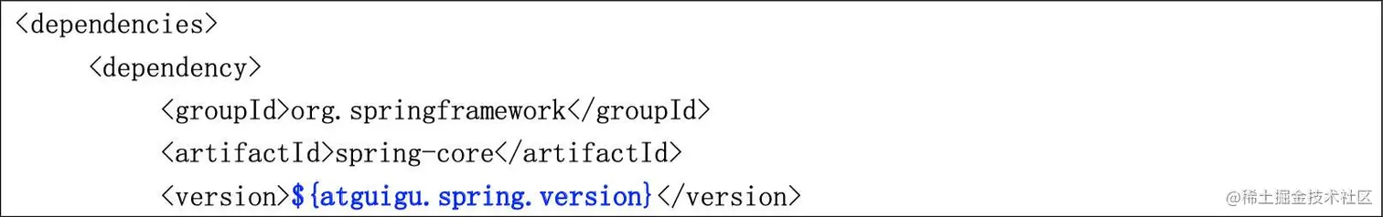 其中 atguigu.spring.version 部分是自定义标签。