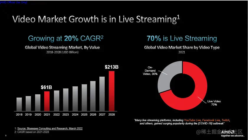 Bluewave Consulting发布的调研成果促使我们下定决心推出新一代流媒体加速卡,该项研究指出了两点,一是全球视频流媒体市场正在快速增长。据预测,流媒体的市场价值将从 2022 年的略高于 600 亿美元增至 2028 年的超过 2130 亿美元,复合年增长率约为 20%。在美国这很大程度上要归功于 Netflix、Amazon Prime、Hulu、Disney+、HBO 等服务商,国内现阶段也存在诸如优酷、腾讯、爱奇艺、抖音、快手、Bilibili等大量视频平台,甚至微博、微信和知乎等应用也在逐步推出流媒体服务,几乎所有公司都在进行流媒体方向的尝试。