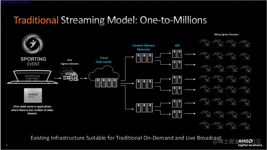 我们认为,虽然传统的流媒体服务以及相关的视频处理、压缩是在服务器级CPU上的软件中完成的。但随着分辨率的增加,帧数要求提高,流媒体体量的增加,直播和互动流应用对低延迟的要求变得更加严格,传统的CPU不能高效地处理这种场景。因而我们开始寻求异构加速的方法,用专业的芯片/IP来处理视频流。