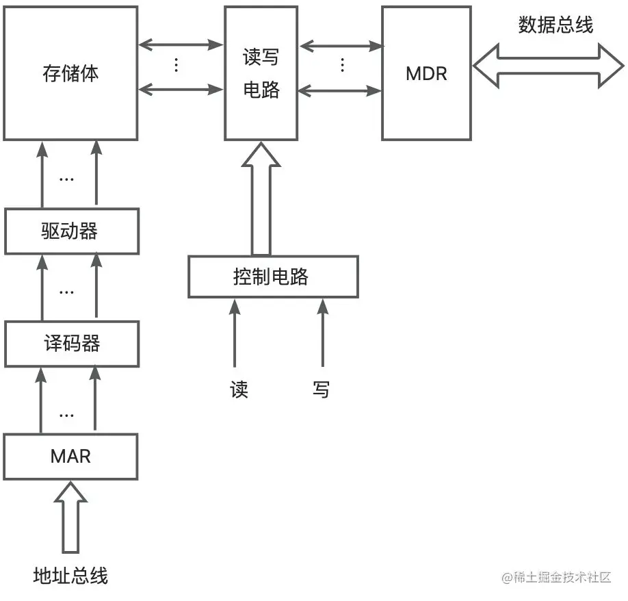 - 通过控制电路决定MDR中是接受存储单元中的数据,还是把数据放入到指定地址的存储单元