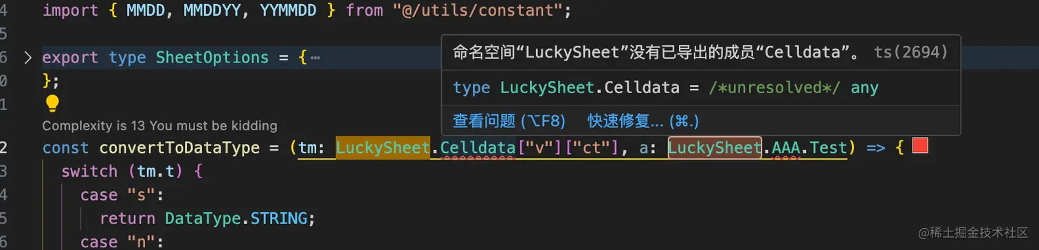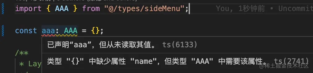 如果.d.ts文件内存在export或import,AAA接口会变为模块内的类型声明,使用时需要导入,即使AAA本身并没有使用export。
