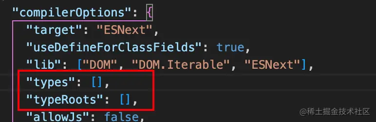 typeRoots配置读取types的目录,默认是node_modules/@types,如果配置了,就不再读取node_modules/@types。即使是配置空数组,也等于配置了(相当于不设置任何路径)。types配置要使用的types包,即存在于typeRoots下的包,如果不配置则代表读取typeRoots下所有的包,配置了则读取配置了的包,不会读取全部包。即使是配置空数组,也等于配置了(相当于不读取任何包)。