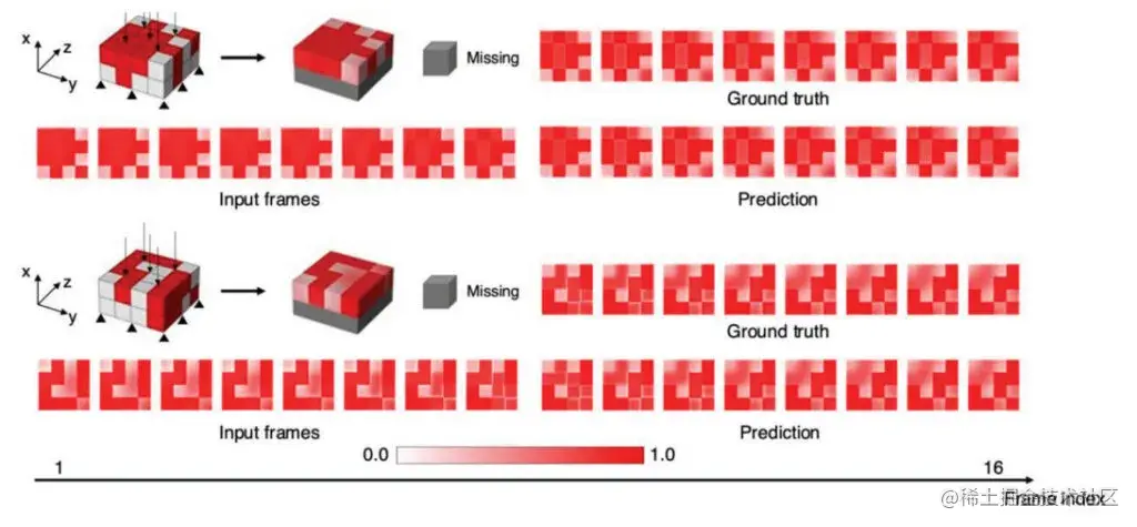 前 8 个帧作为输入,其余 8 个帧由深度学习模型预测。