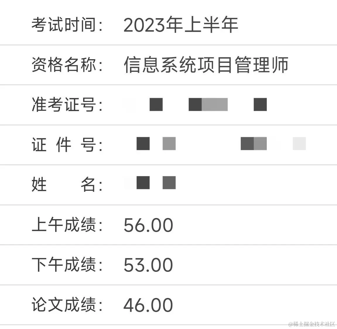 对软考高项一无所知的我,回去查了查:软考高项,全称信息系统项目管理师,是由工信部和人社部组织的,计算机技术与软件专业技术资格考试。通过率大概在15%左右,一年考两次,一次考一天,一天考三科:综合知识、案例分析、论文。每一科满分75分,都超过45分才算合格,还是很有难度的。