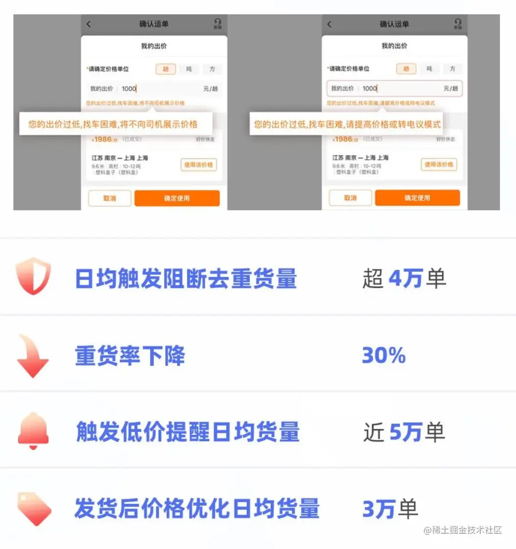 此外,满帮对重复低价货源等典型问题的治理始终没有停止,这已经成为满帮从源头杜绝用户不良体验的重要规则。在原本就设置了一系列价格误填提醒、恶意比价阻断等规则的基础上,满帮还已在7月上线全面升级的“火眼金睛”产品,进一步提高算法对全链路的识别、平台对交易流程的分析能力,使司机和货主处于健康的报价体系和交易环境之下。公开数据显示,今年以来,满帮日均触发阻断去重货量超过4万单,重货率下降了30%。