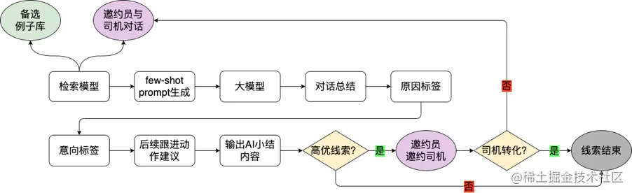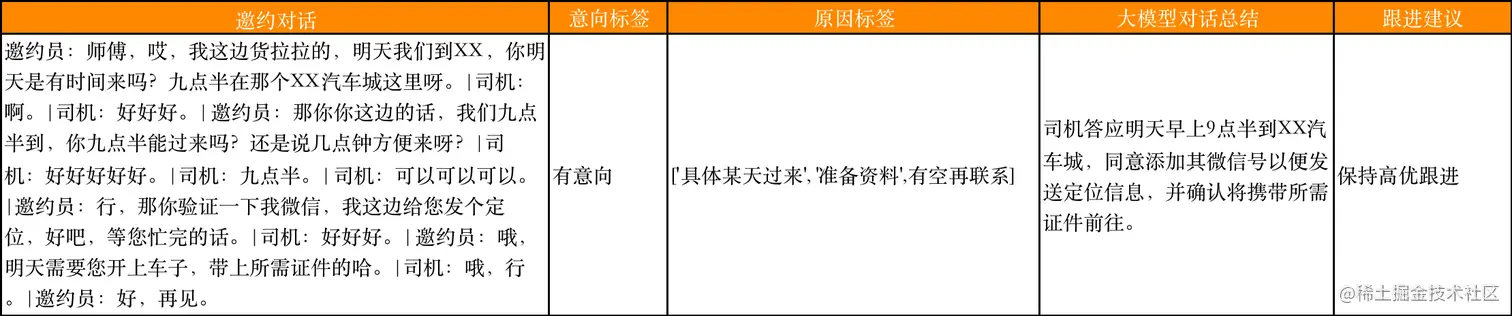 为了解决这些问题,我们在邀约员与司机对话结束后,将样本数据进行匿名化处理后,利用自研的GPT对话总结能力,提供了客观、清晰、标准的通话记录小结。这种方法不仅可以提高对话文本的识别准确性,还可以提高邀约员的工作效率。