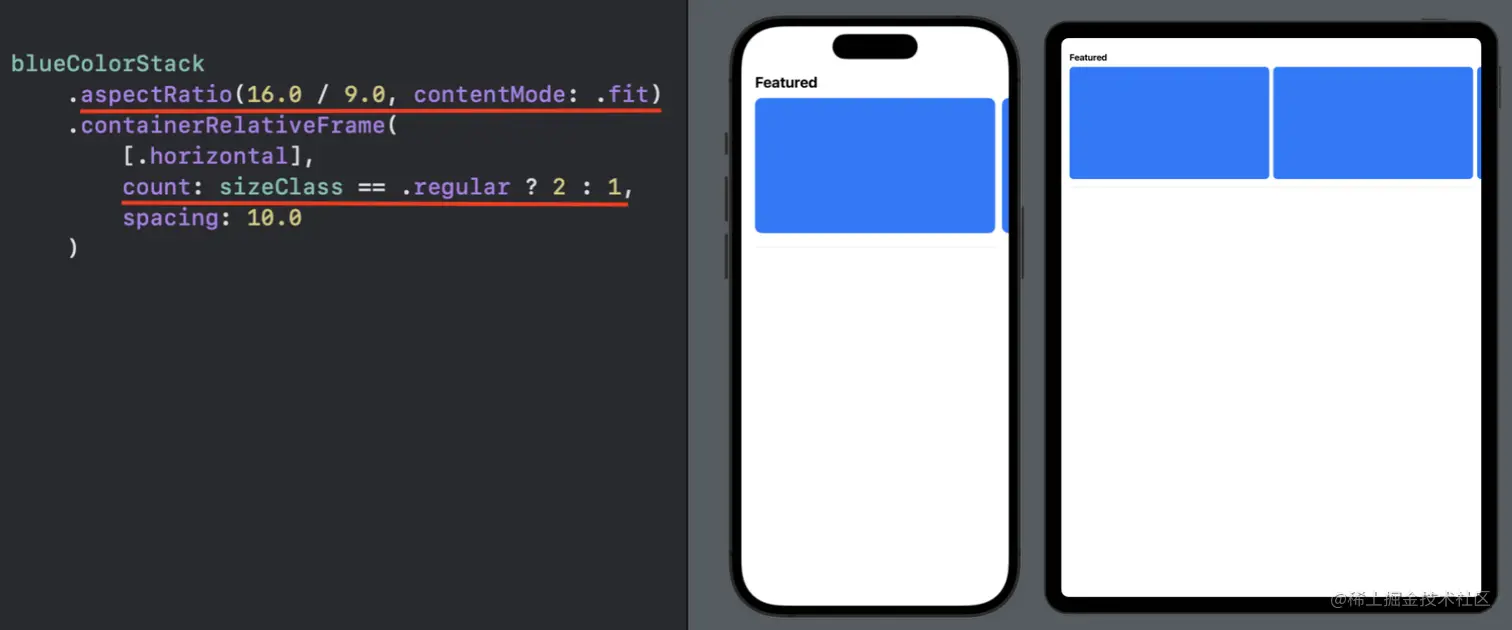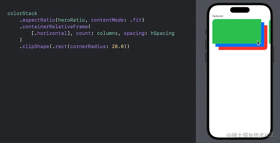 - 通过 containerRelativeFrame 修饰符代替 GeometryReader 的计算逻辑,可以轻松的创建布局;