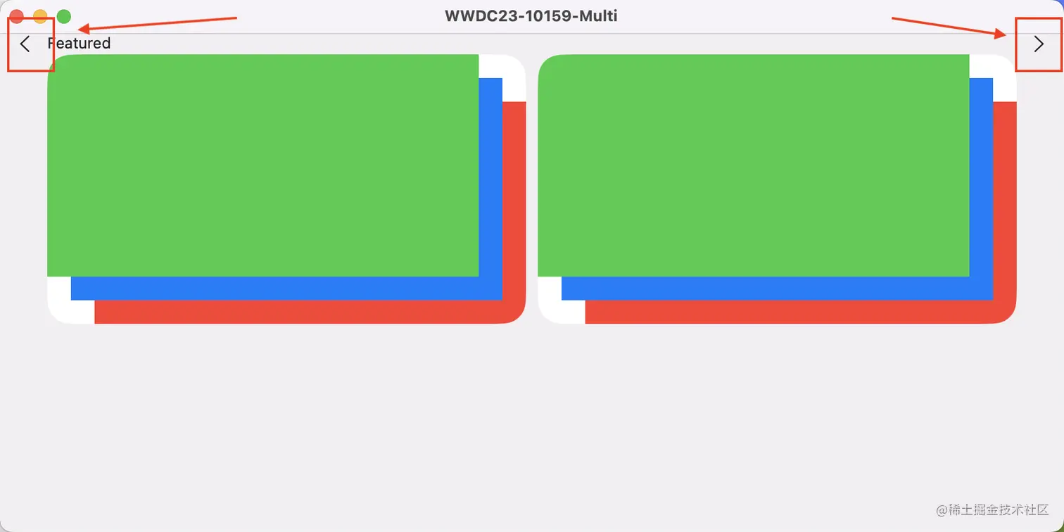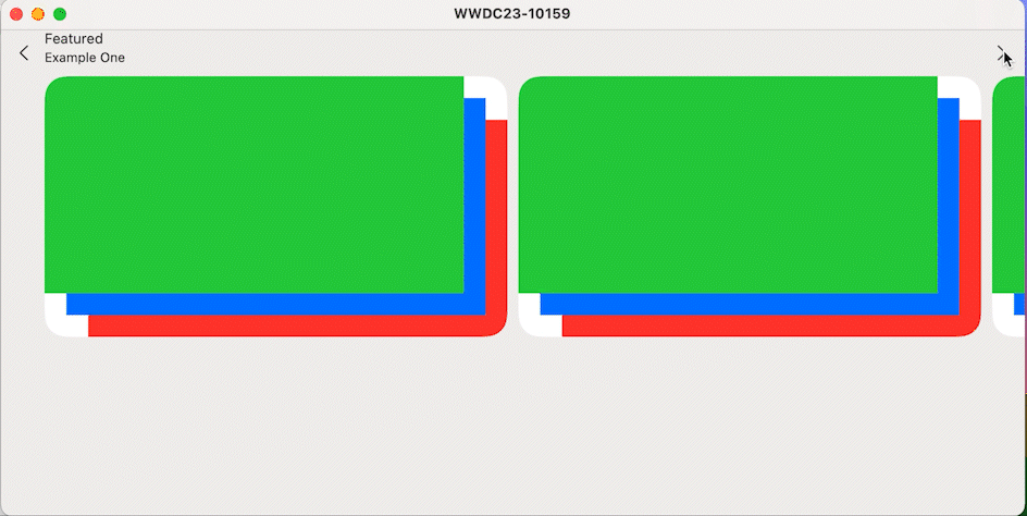 尽管已经简化了很多逻辑,代码还是很复杂,而且重点还要处理两种改变 mainID 的方式冲突 Bug。 而在最新的 SwiftUI 中,新增了 scrollPosition 修饰符,它绑定了与包装标识符的状态,我们可以将其传递给 ScrollView,然后 ScrollView 将从中读取并传递给 GalleryHeroHeader。在 GalleryHeroHeader 的 paddles 中,我们可以在按钮点击时写入绑定。写入绑定后,ScrollView 会滚动到具有该 mainID 的视图。而且直接滑动 ScrollView 时它会自动更新 mainID,没有两种方式的冲突问题。简化代码如下: