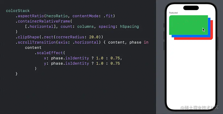 - 通过 scrollTransition 方便的获取滚动视图状态,便捷的实现过渡动画。