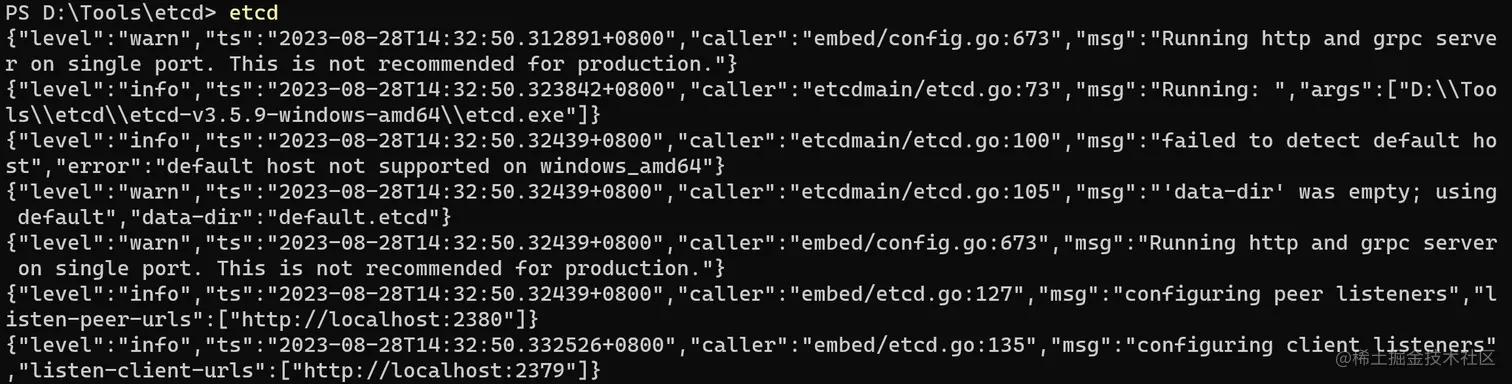 如果你在尝试了 下载最新版本、使用管理员权限运行、启动端口没有被占用、关闭防火墙 之后仍旧无法正常启动 etcd, 那么请重启电脑后再次运行