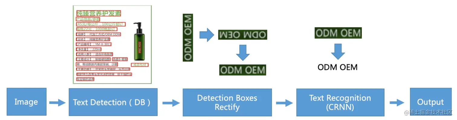 - 文本检测模块:核心是一个基于DB检测算法训练的文本检测模型,检测出图像中的文字区域;