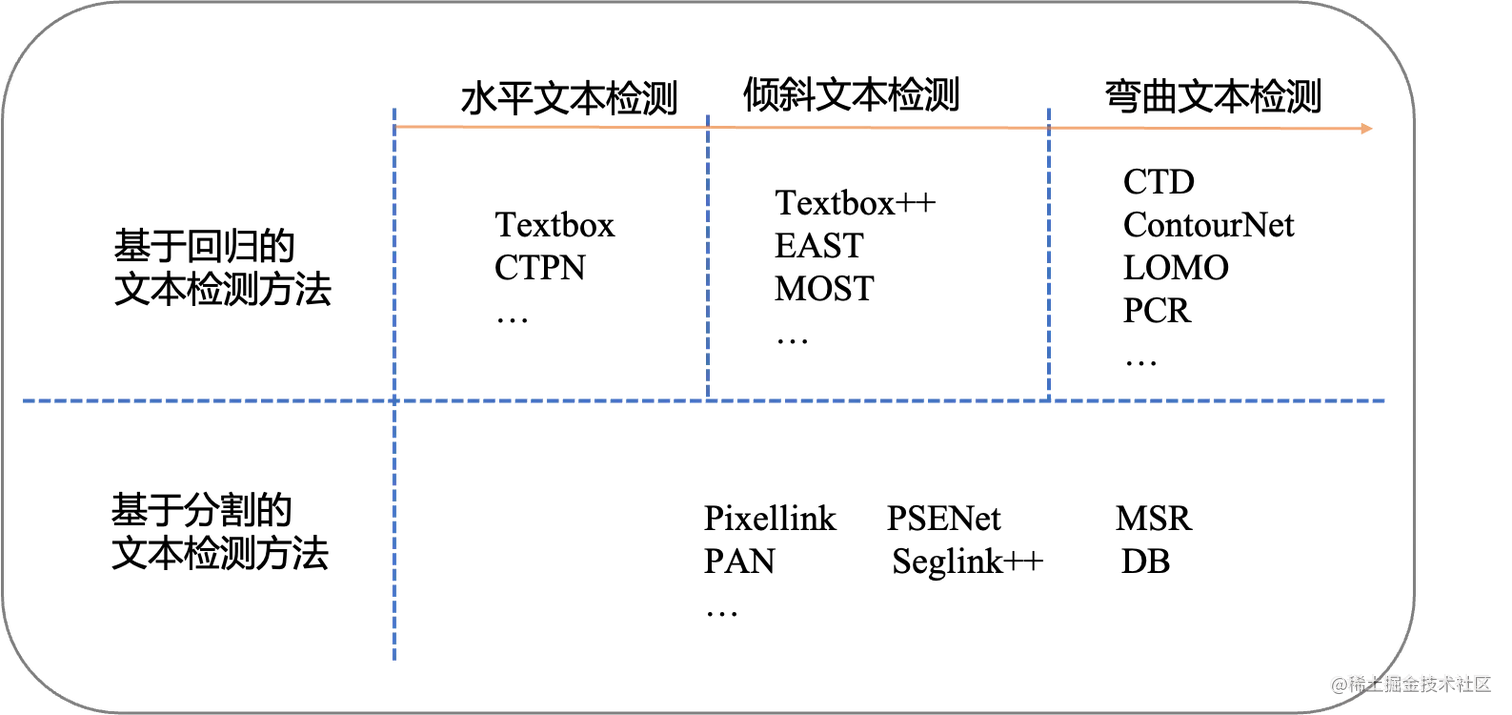 近些年来基于深度学习的文本检测算法层出不穷,这些方法大致可以分为两类: