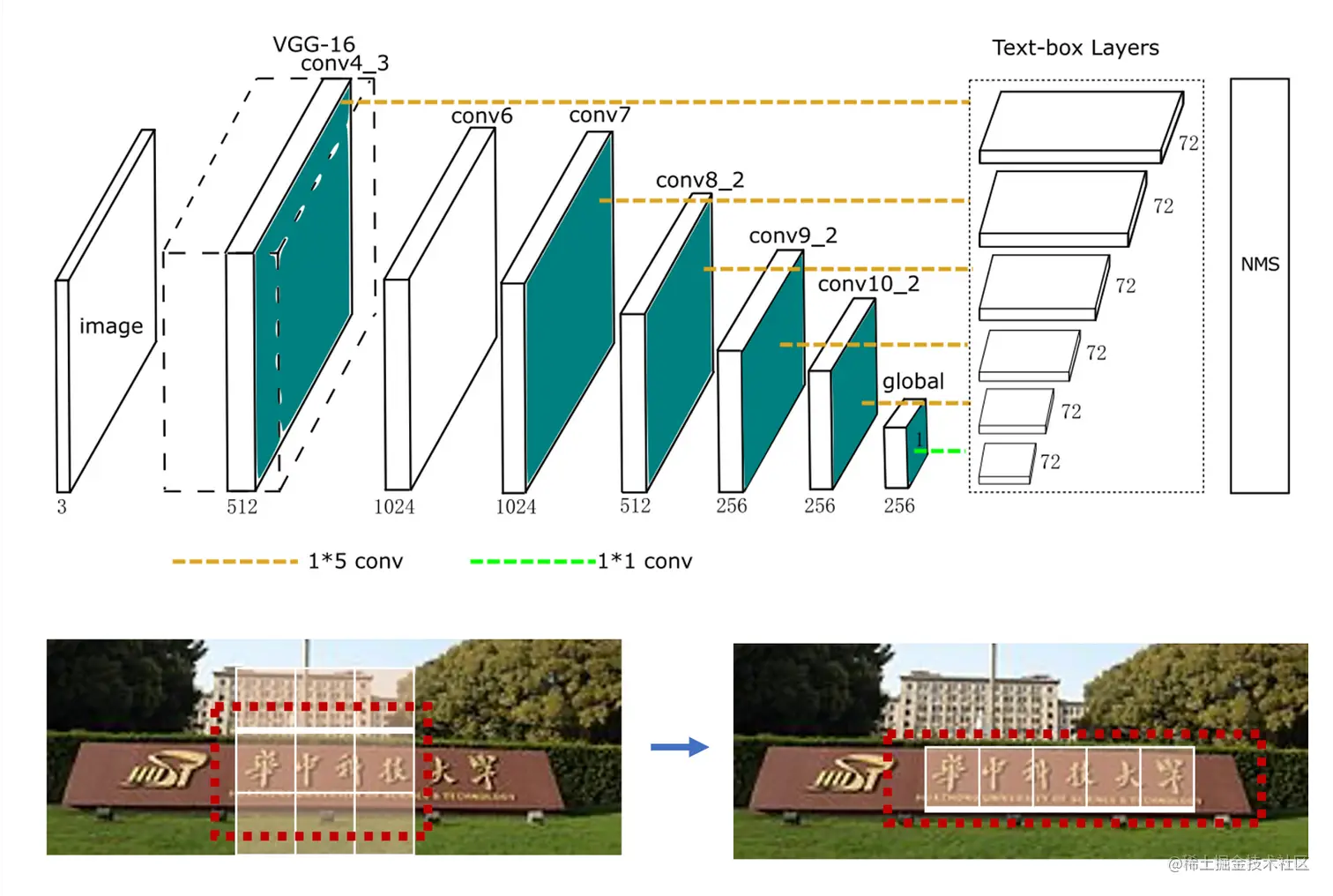 - 卷积核从3x3变成了1x5,更适合长文本检测