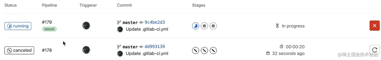 例子🌰: 比如两次提交相隔较近,且都在runing中,会自动取消比较久的一次