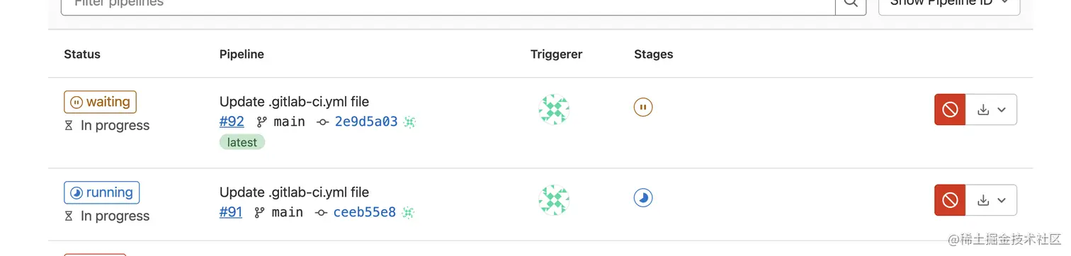 从而可以避免久的流水线快于新的流水线,从而代码不是最新的