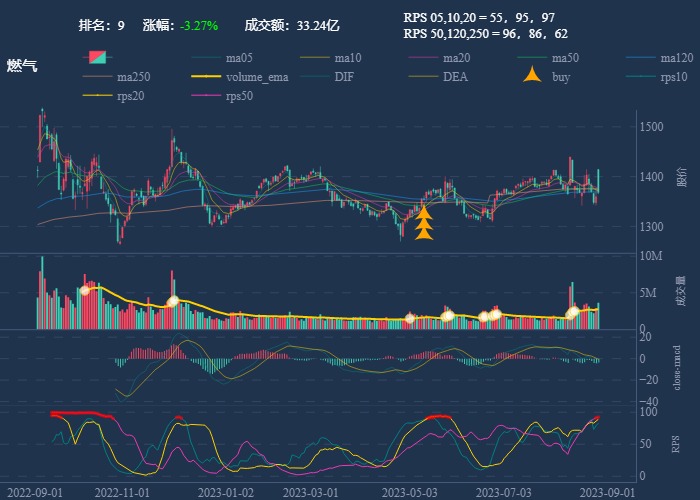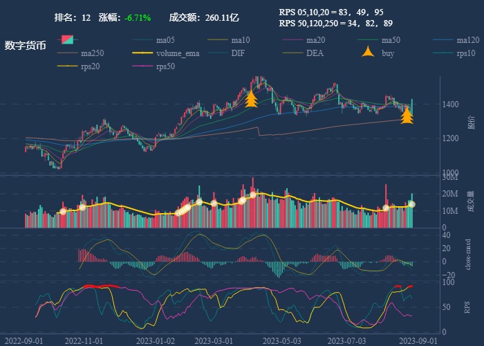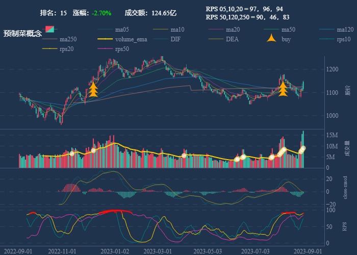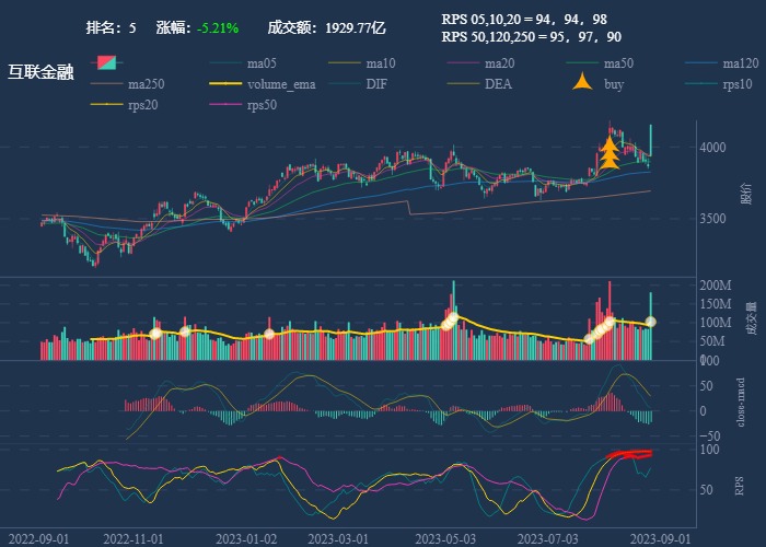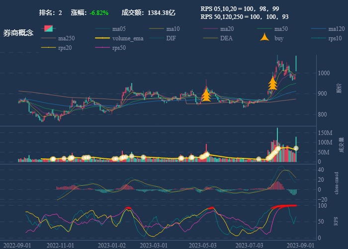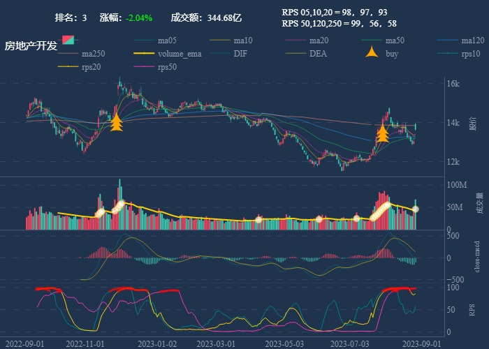 - 一线红:第一次买点出现后往往是顶峰,等回调,macd 反转,rps50 还一直红,第二次买点重现
