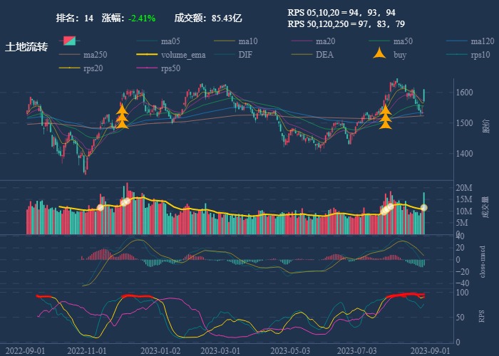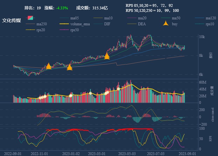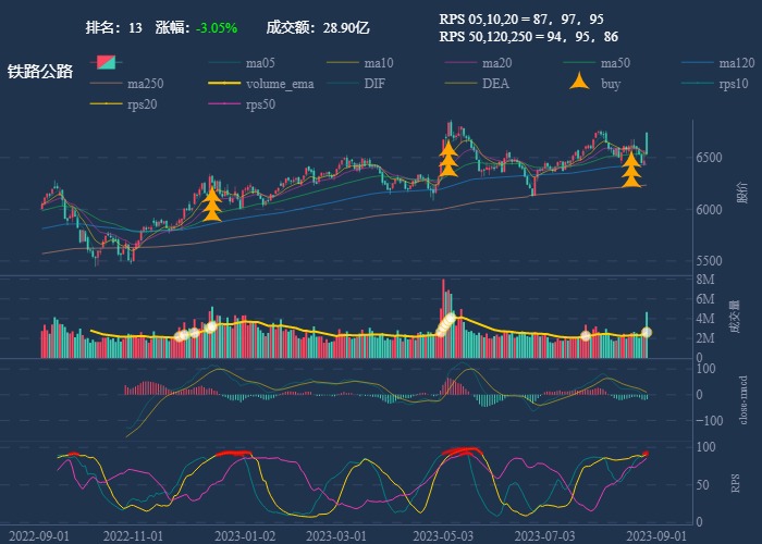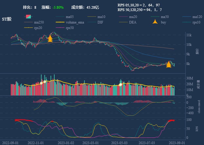 - 第一波行情 rps20 + 10日均线,第二波行情 rps50 + macd反转。