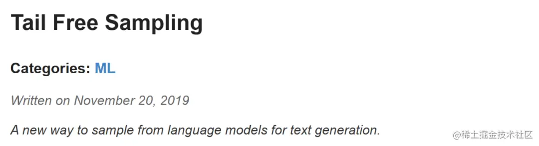 无尾采样是 Top-p 采样的衍生,之所以这样命名是为了找到 「尾」,因为 Top-p 采样可能会在许多 token 具有相似概率的点上被切断而失败。上面这篇文章像是说明了无尾采样能够更好进行采样工作的原因,但当涉及到提高模型的创造力和范围时,没有很好的基准。