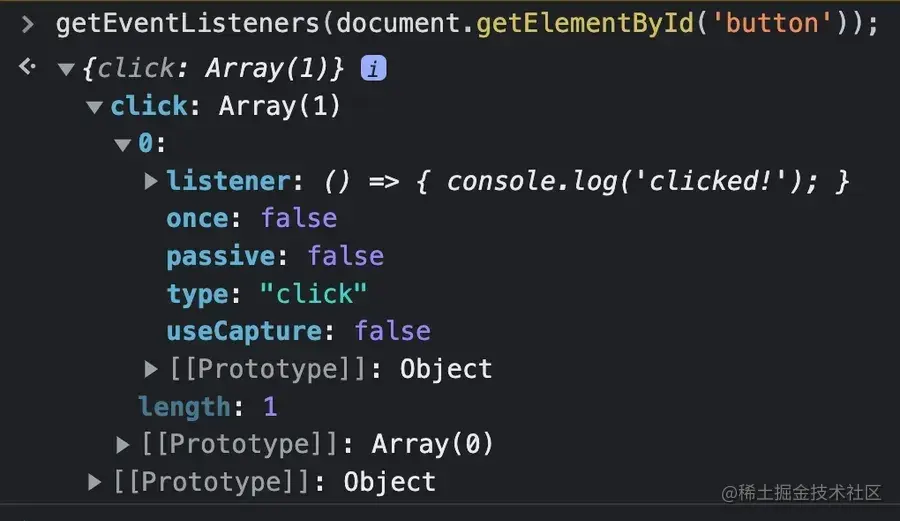 getEventListeners(button) // {}
