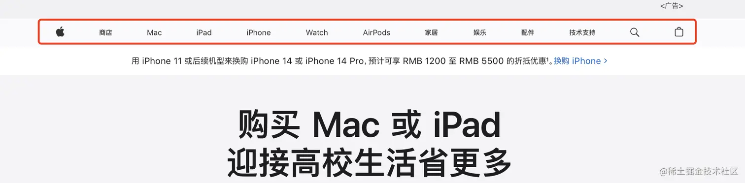 在< div>标签划分的区块中,< nav>标签则对应导航链接的区域。