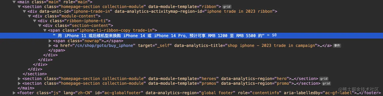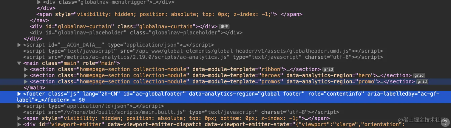 而< main>标签当中记录了网站当中的主要内容,用< section>对网站的内容进行分块描述。