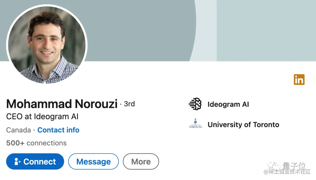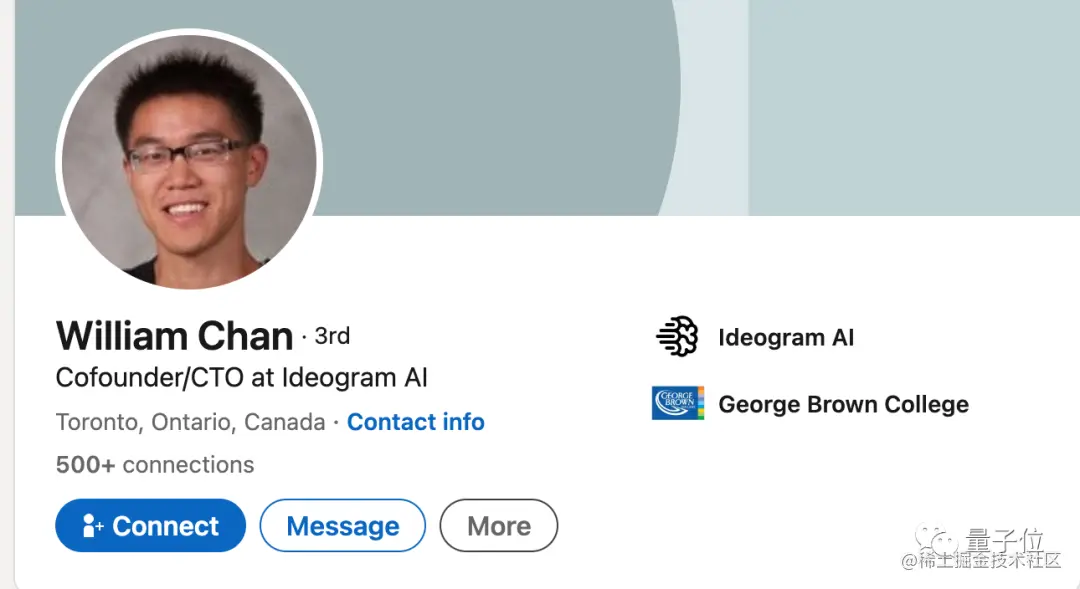 Ideogram AI创始团队共7人,其中4人都是谷歌Imagen,其中共同一作Mohammad Norouzi任CEO,他在多伦多大学计算机科学博士就读期间拿到了谷歌ML博士奖学金。毕业后他加入谷歌大脑工作了7年,除了生成模型之外也是也是谷歌神经机器翻译团队的原始成员,Hinton团队自监督对比学习框架SimCLR的合著者。共同一作William Chan (陳俊樂)任新公司CTO,他先后就读于加拿大滑铁卢大学、卡内基梅隆大学。他2012年加入谷歌时先做的机器学习广告工程,后转到谷歌大脑作NLP研究。