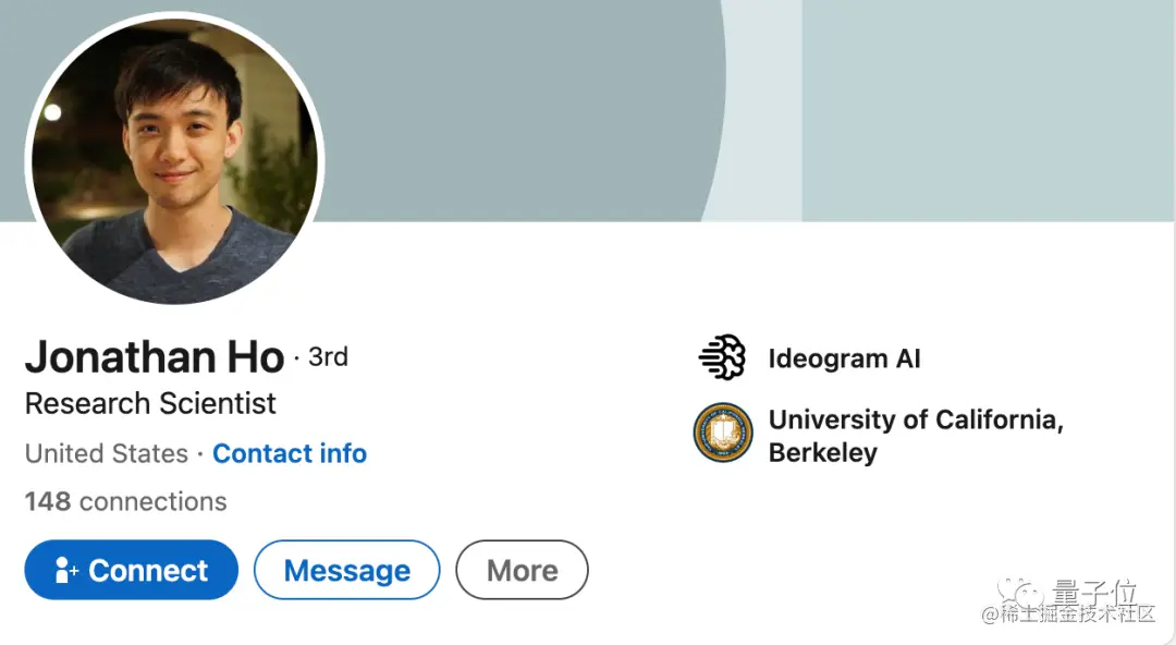 第四位联创Jonathan Ho博士毕业于UC伯克利,曾在OpenAI工作一年,后加入谷歌。他除了是Imagen论文的核心贡献者,还是去噪扩散模型奠基之作 《Denoising Diffusion Probabilistic Models》 的一作,这篇论文合著者中的Pieter Abbeel也是Ideogram AI的投资人。