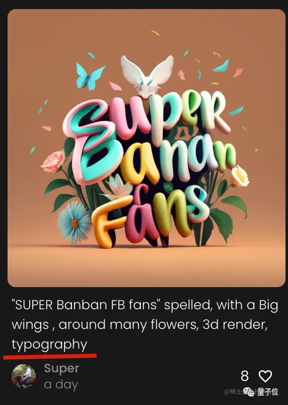 从网友们分享的提示词中也可以看出,增加画文字成功概率的“咒语”也很简单,就一个单词:typography(印刷排版)