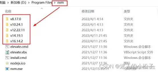 (2)将指定版本的NodeJS免安装版离线安装包,解压后放入到NVM安装路径的根目录下,即可完成离线安装