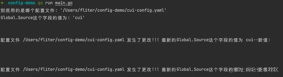 到底用的是哪个配置文件: '/Users/fliter/config-demo/cui-config.yaml'