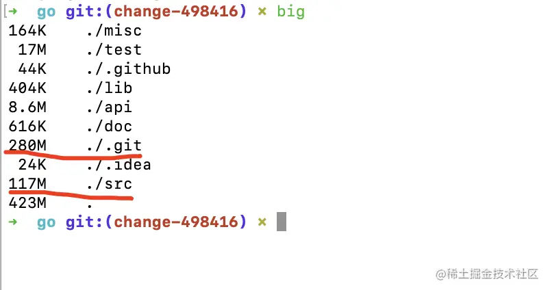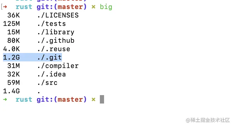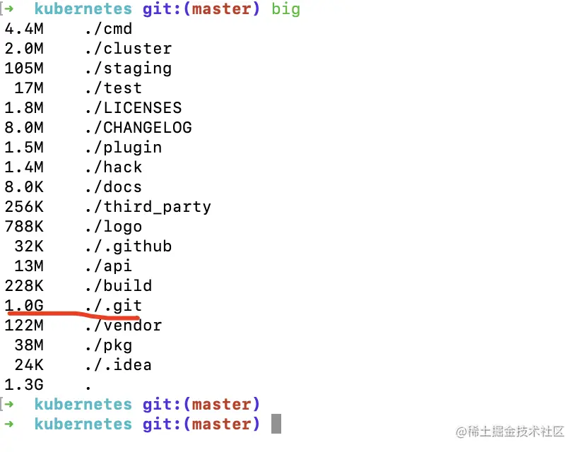随着项目提交次数的增多,.git目录占用的空间大小,往往可能会比项目源代码本身要大得多。