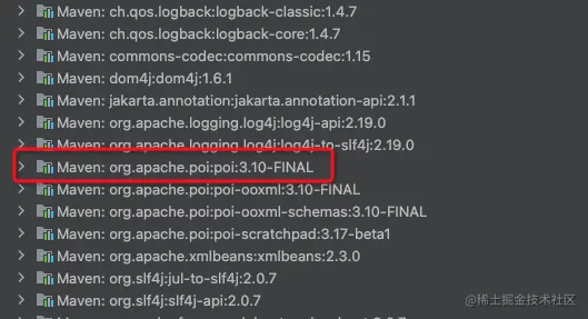 由于外部工程依赖了 poi 包的 3.10-FINAL ,但是子工程依赖了 poi 的 5.2.3 版本,故整体包依赖会包含poi的两个版本,但是在子工程中使用的是 5.2.3 怎么证明我们在子工程使用的是 poi 的 5.2.3 版本呢? 我们在子工程可以写一个 main 方法调用方法 org.apache.poi.util.Units 类的 columnWidthToEMU 方法,在父工程同样调用这个方法,发现父工程这个方法报错不存在。