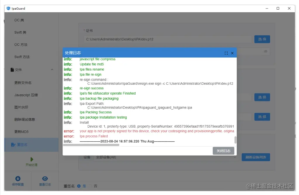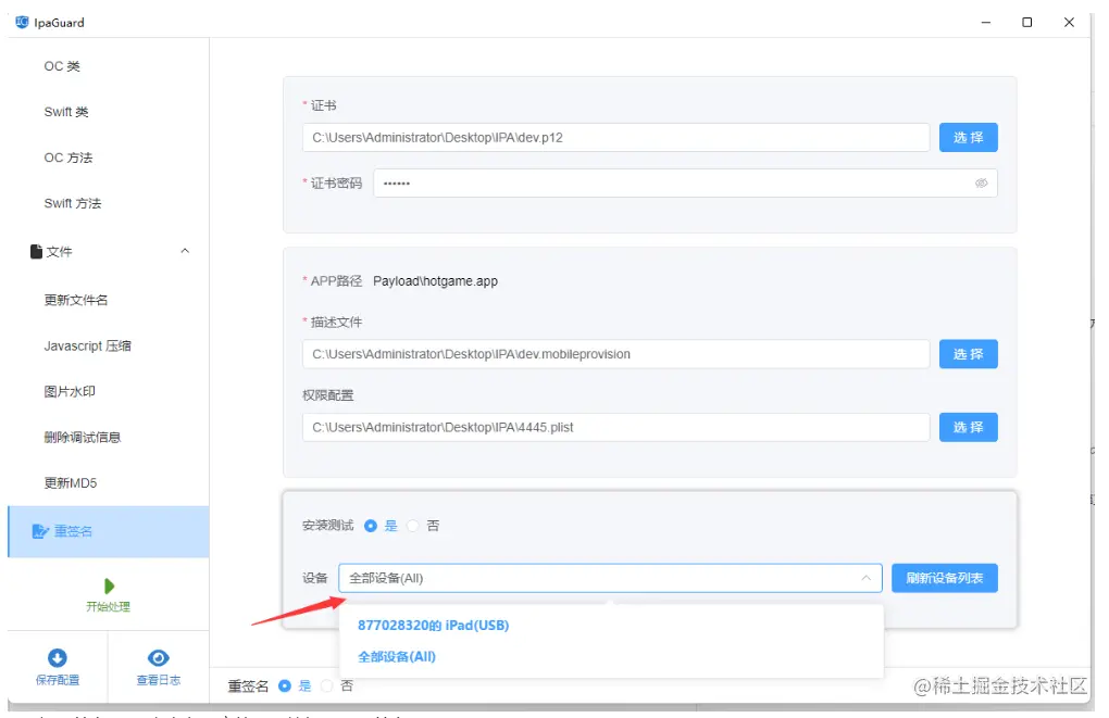 重签名部分:使用Ipa Guard对代码进行混淆和保护,无需app项目源码,直接对编译后的app进行操作。