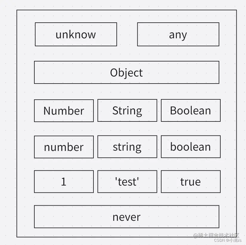 any任意类型,是一种动态类型,表示变量可以是任意类型的值。不清楚类型的变量类型,使用any就没有强制限定,随意切换。any 的本质是类型系统中的顶级类型,即 Top Types