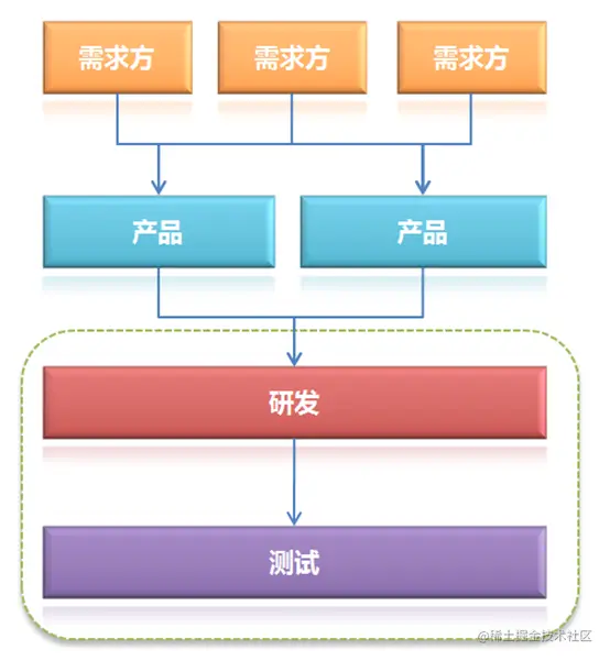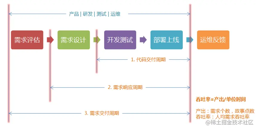 举个例子,拿软件漏测率高,导致线上事故频发的现象来说。先从整个需求交付流程来看,整个产品迭代的节奏如下图: