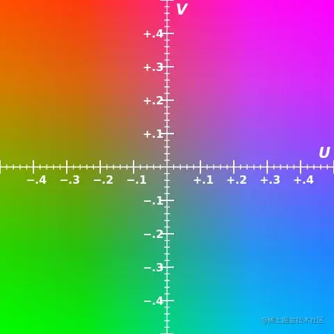 - U:色差信号R-Y(红色-亮度)。取值:-0.5 ~ 0.5;