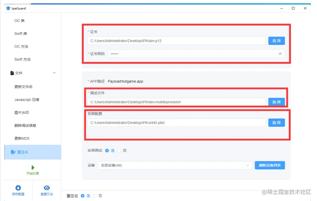 重签名部分:使用Ipa Guard对代码进行混淆和保护,无需app项目源码,直接对编译后的app进行操作。