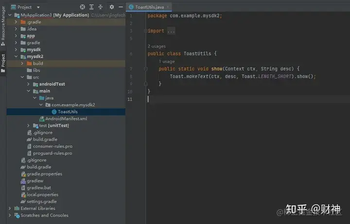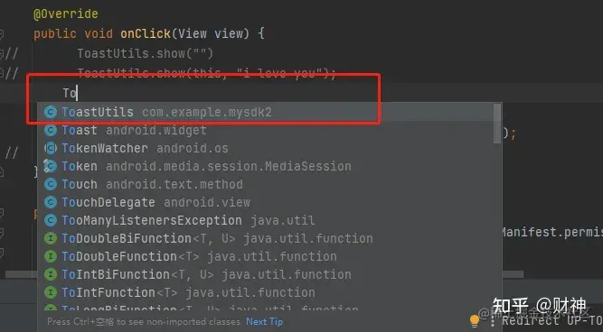 - 在项目中,建个类文件,写个 Toast 方法,后期打包后,供测试功能使用。