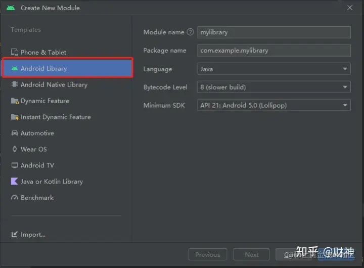 - new Modules 时选择 Android Library