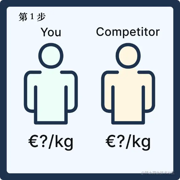 在这个示例中,你和竞争对手正在从同一供应商购买相同的材料,你想知道每千克是否支付相同的价格。但是,你们之间缺乏足够的信任来透露各自的价格,你还受到不得分享此信息的合同约束。