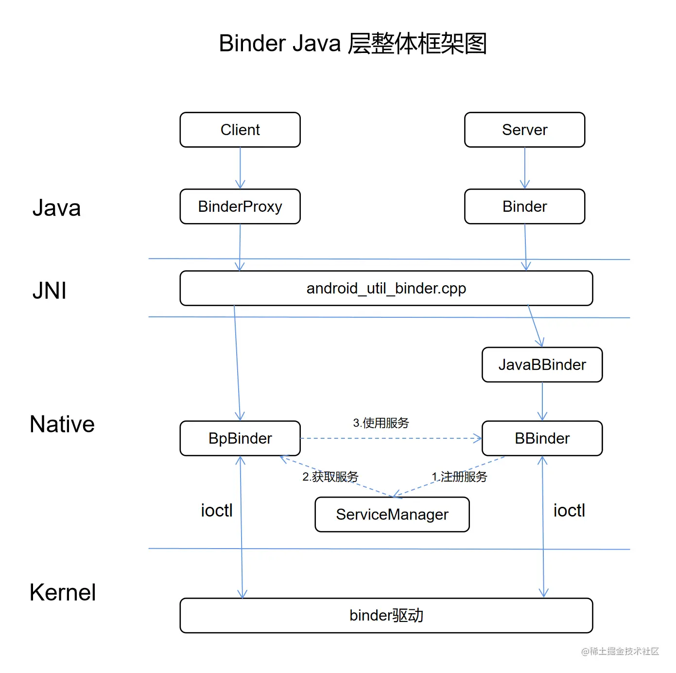 在查看源码之前我们先回顾下 Binder Java 层的总体架构: