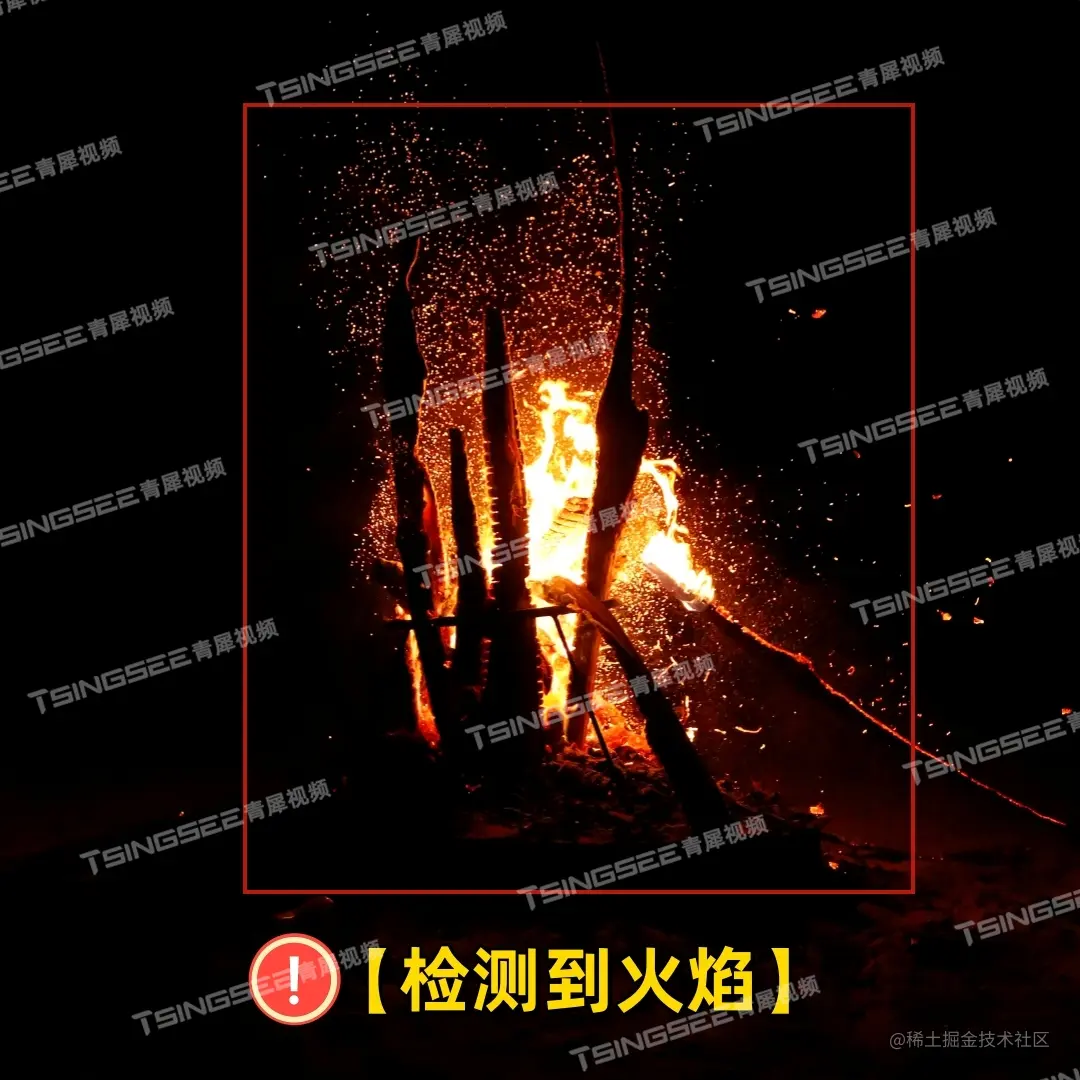 2)火焰检测:检测固定区域监控画面内是否存在火焰的消防风险隐患,当识别到火焰、明火时,系统则自动发出告警并记录。