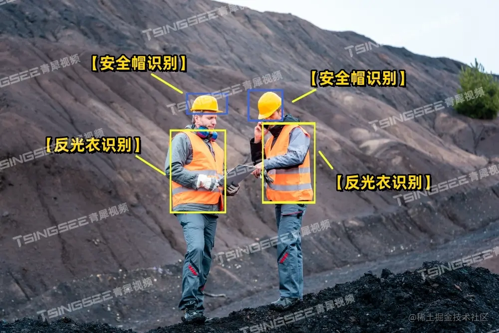TSINGSEE青犀智能视频分析平台可以对矿工佩戴的安全帽进行识别和检测。AI算法可以检测是否有矿工未佩戴安全帽或佩戴不当,并及时发出警报,这有助于预防因未佩戴安全帽而引发的伤害事故。在场景应用中,比如,在矿工在下井前,通过摄像头采集的视频流实现矿工防护装备自动检测分析,具体包括: