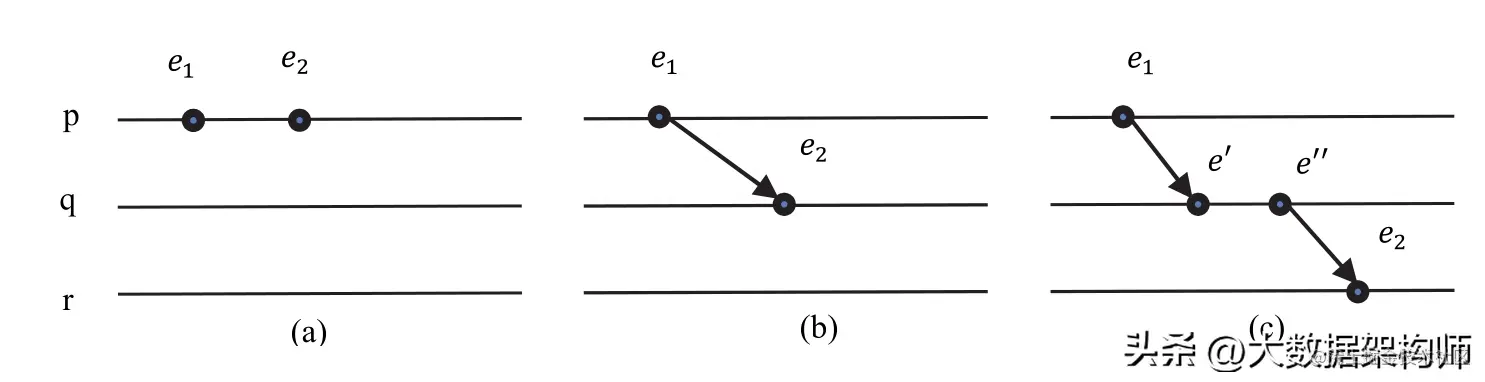 (1)在同一个进程p中,事件e1发生在事件e2前,对应图3-4(a)。